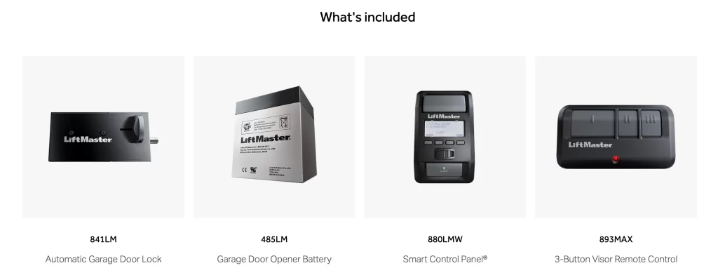 Comes with MyQ Technology. You can control your garage door opener from anywhere in the world with your phone via the MyQ app. It has a built in camera that detects motion and allows you to communicate in realtime via a microphone and speaker.